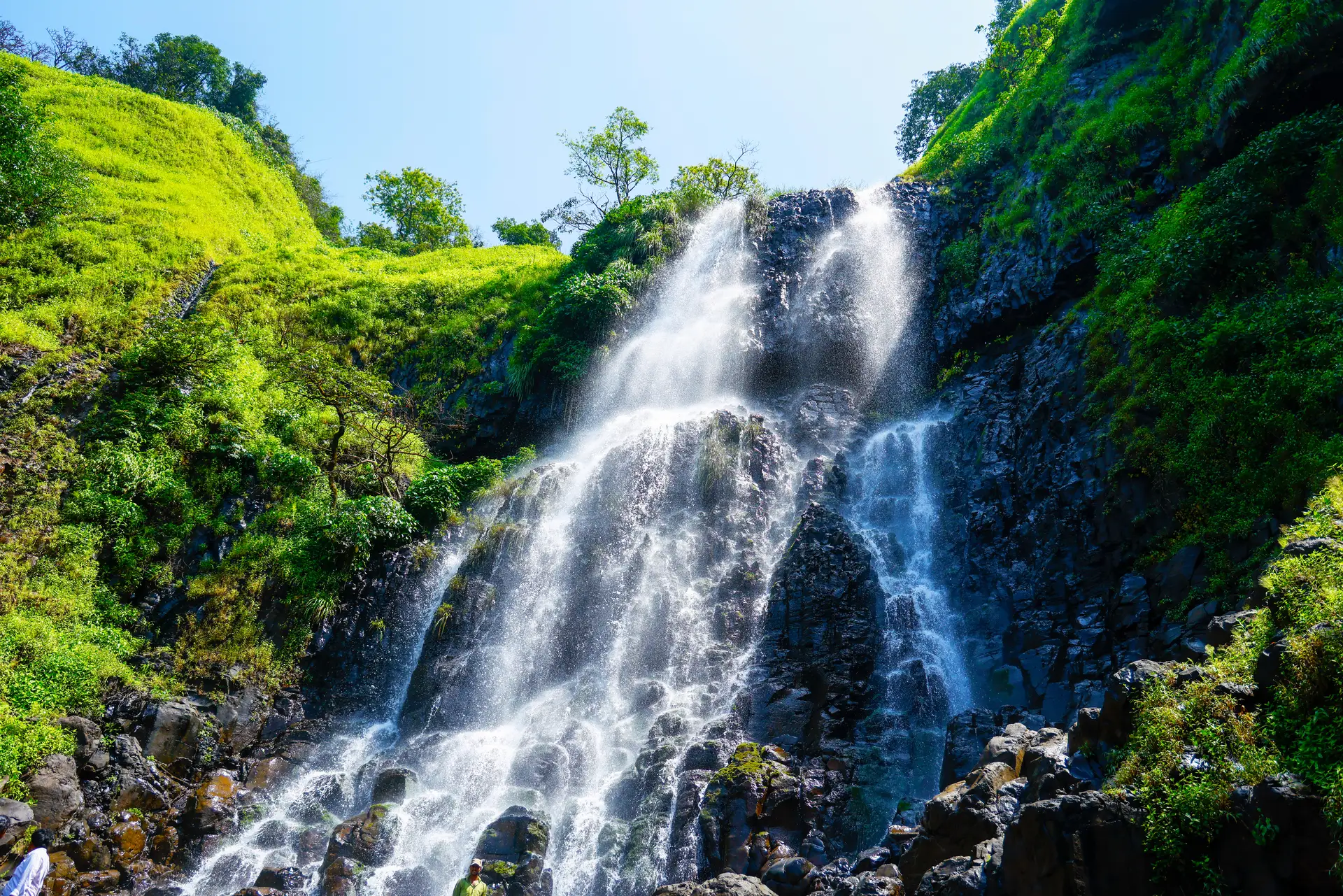 During peak monsoon season, the landscape transforms into a theater of falling water, with countless seasonal streams emerging from the mountainsides.
